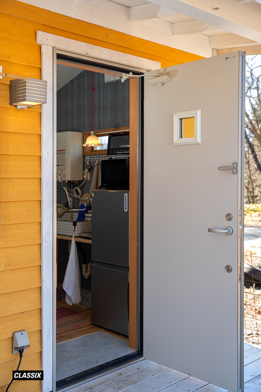 ▲作業に集中している時には「手早く食事をつくりたい」との理由から、室内にはミニキッチンも設けられている。電気・水道・ガスを完備した小屋は珍しい存在だ。