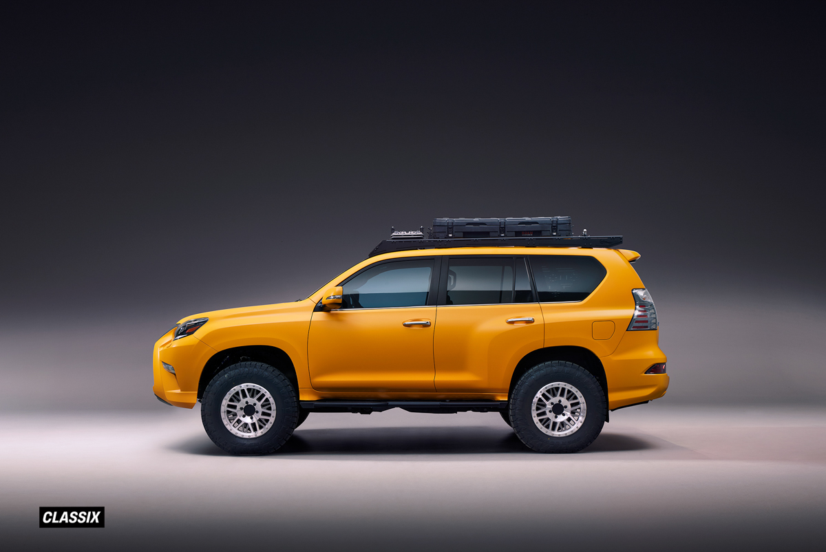 新型GX550のオーバーランド仕様。33インチ・タイヤにブラックアクセントのオーバーフェンダーの組み合わせ。