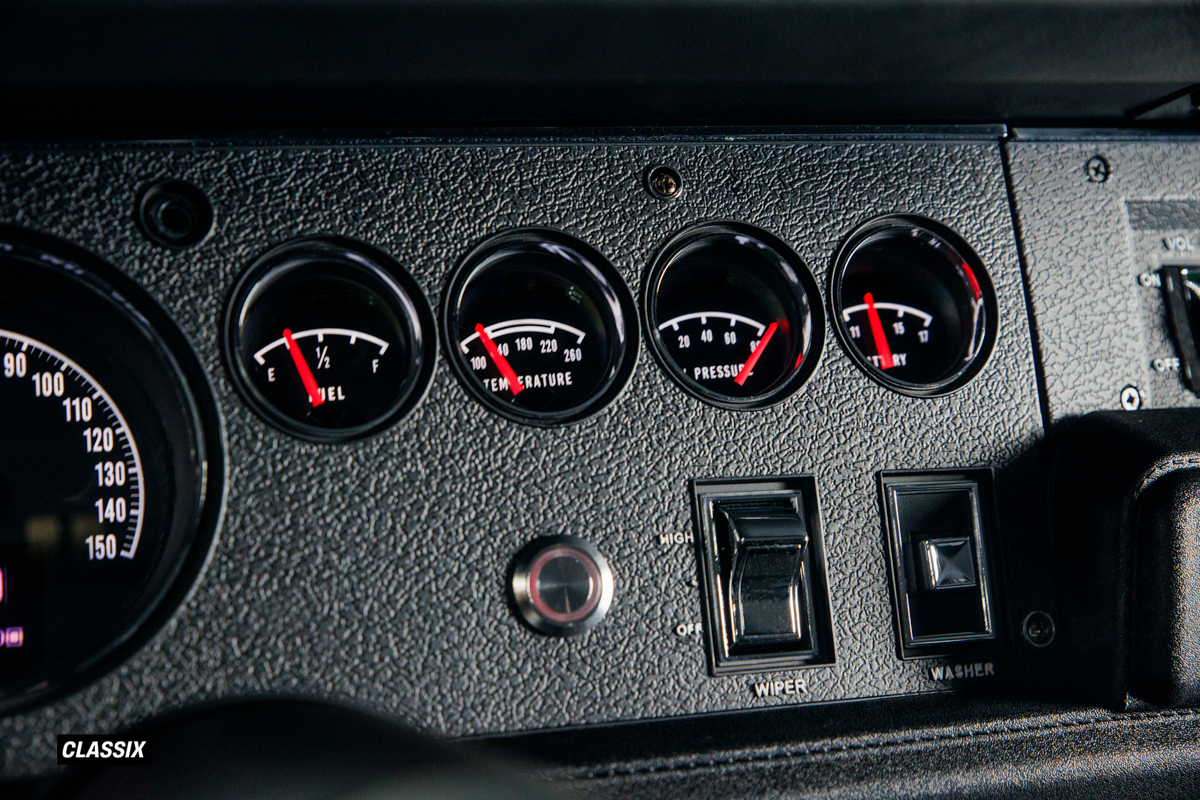▲デジタルバックミラー、ダコタデジタル製デジタルメーター、ヴィンテージエアー製空調システムなど、快適でモダンな装備を奢ったインテリア。