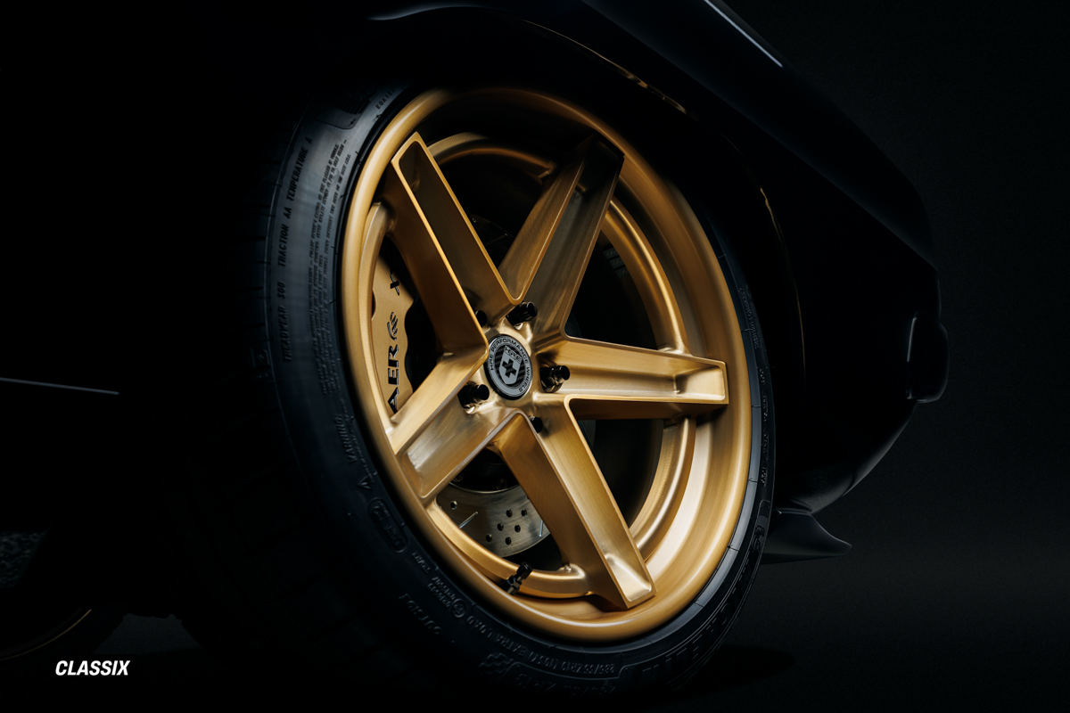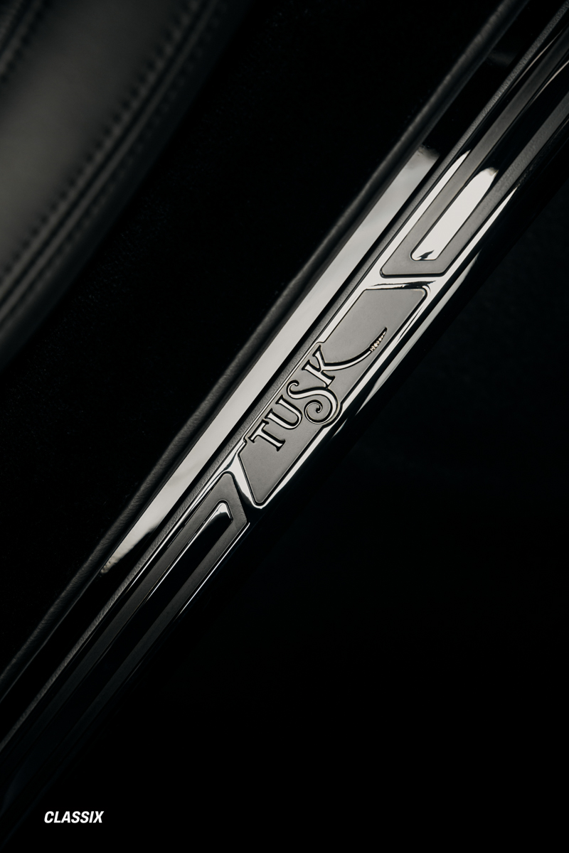 ▲細かな部分までメタルワークを駆使して制作された“タスク”。足元にはHRE製ホイールを装着している。