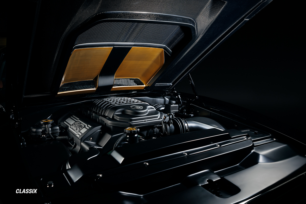 最大のトピックスは前述した通りモパー最強のクレートエンジンであるヘルファント(Hellephant)を搭載していることで、排気量426cu.in.(7.0L)のスーパーチャージャー付きV8エンジンは、トレメック製T-56マグナム6速M/T、カーボンファイバー製ドライブシャフトを経由してリアタイヤへ1000馬力を伝達するという。