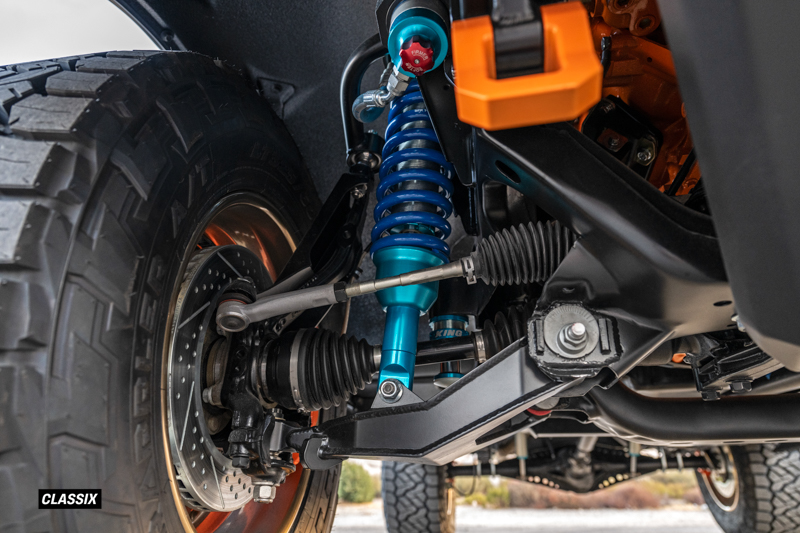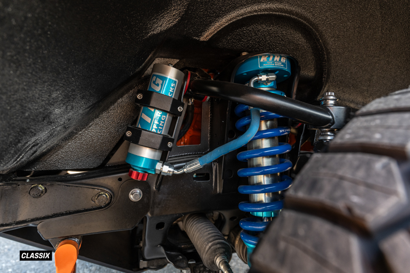 サスペンションは前輪にはTotal Chaos製のコントロールアーム、後輪にはカスタムのリアサスペンションとKing製のショックアブソーバーが取り付けられている。
