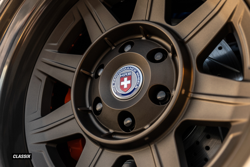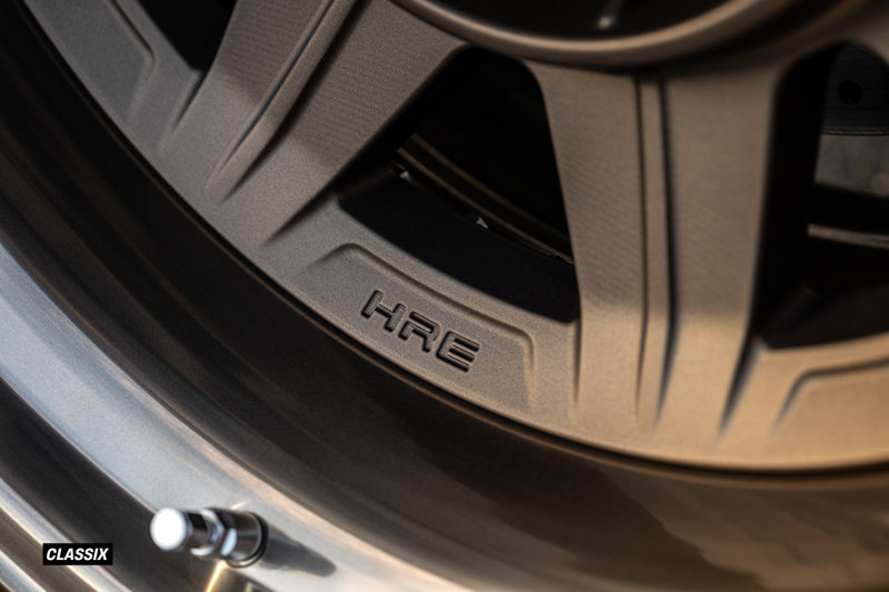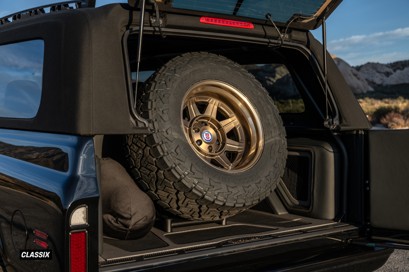 足元にはHRE製の18インチホイールを装着し、リアシートの後ろには専用のスペアタイヤマウントも設置されている。