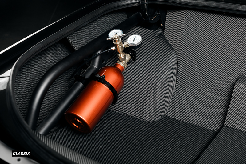 Duco Performance製のエアジャッキシステムも搭載され、サーキットでのスムーズなタイヤ交換をサポートする。