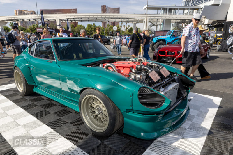 ▲日産フェアレディZ(S30型)をベースにしたレストモッド仕様。クラシックなスタイルに、ダッジ・バイパー用のV型10気筒とワイドフェンダーを組み合わせ、SEMAらしい圧巻のクルマに仕上げられている。