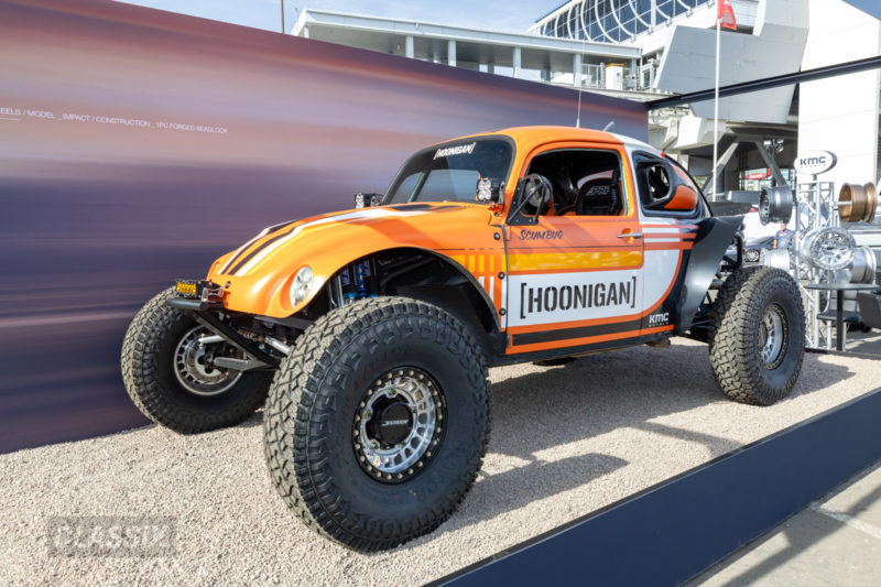 ▲フーニガンが手がけたオフロード仕様のカスタムマシン「Scumbug(スカムバグ)」。このプロジェクトネームはスラム街(Scum)×バグ(Bug)を掛け合わせたもので、クラシックなビートルのボディをベースに、極太タイヤとハードな足まわりでBAJAスタイルに仕上げている