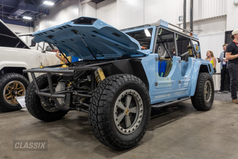 ▲1973年式のフォルクスワーゲン・シング。完全ワンオフのロングトラベルシャシーとポルシェ911(930型)に搭載されていた空冷水平対向エンジン(3.2L)を組み合わせている。350以上の部品をハンドメイドで製作し、ポルシェ911(996型)のギアボックスや997型のデフまで装備。美しい内装も見どころのアートピースである。