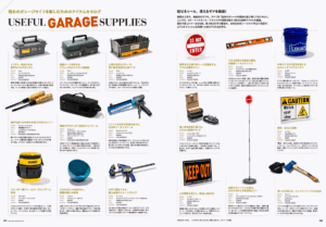 巻末には憧れのガレージライフを楽しむための、100以上のアイテムを収録した「ガレージ・サプライ」や、国内で入手可能なキットガレージを90スタイルも収録した「最新ガレージカタログ」も掲載しました。