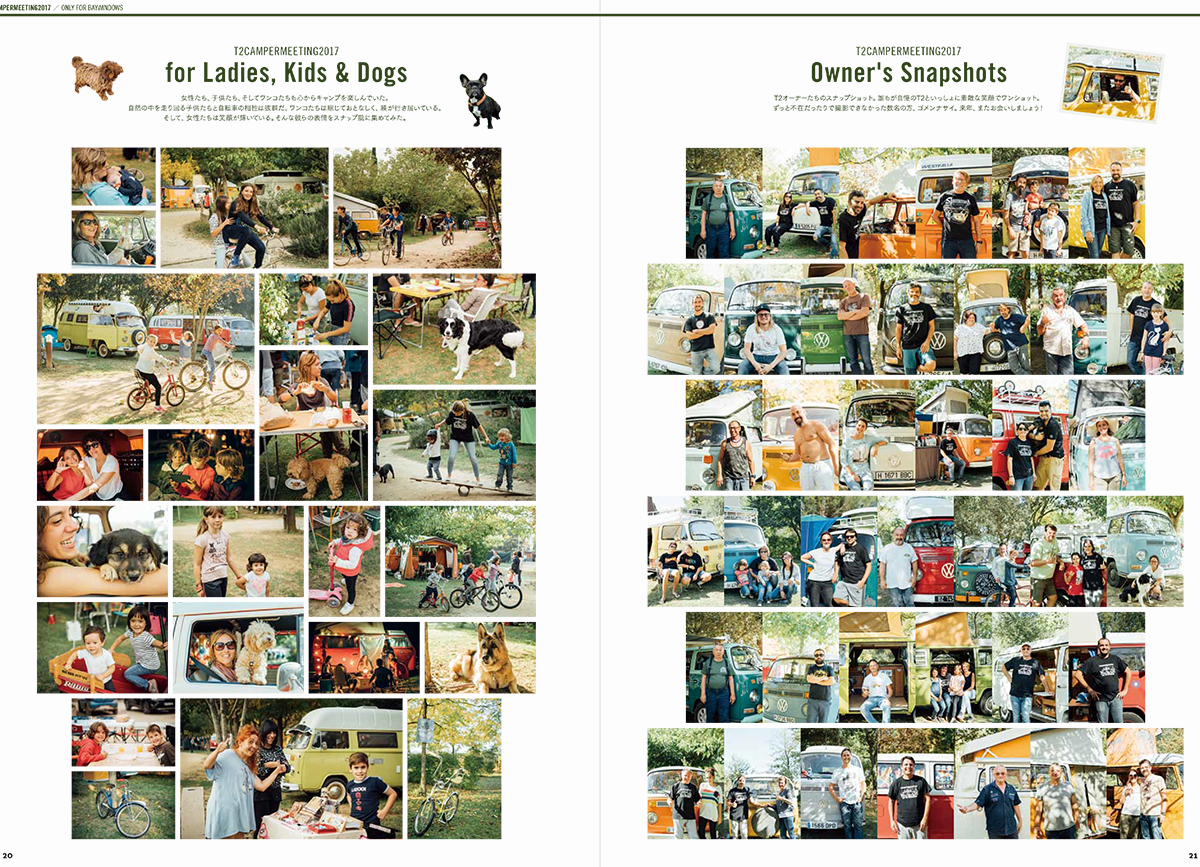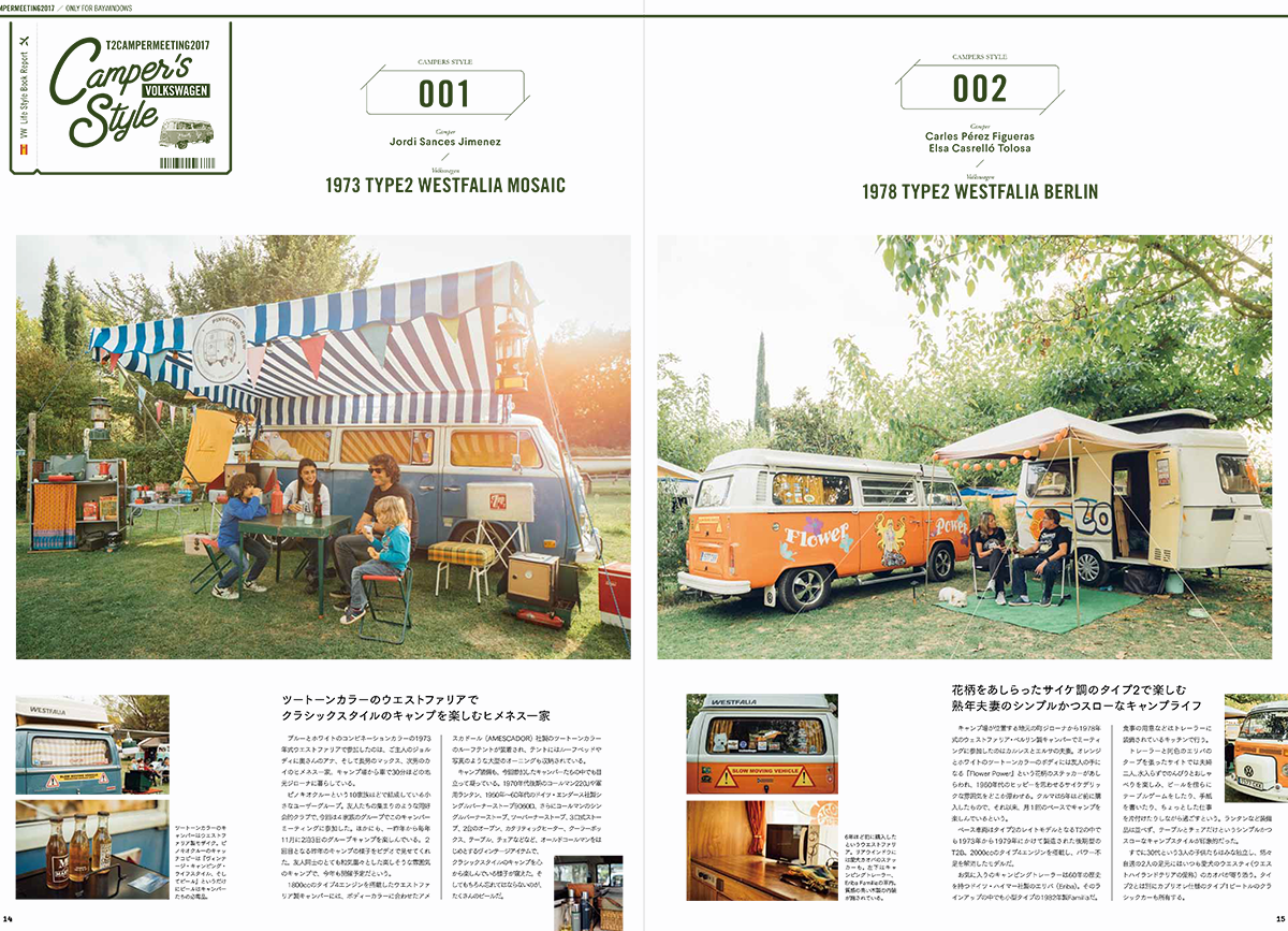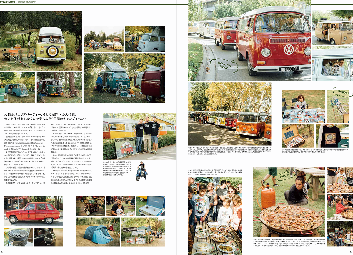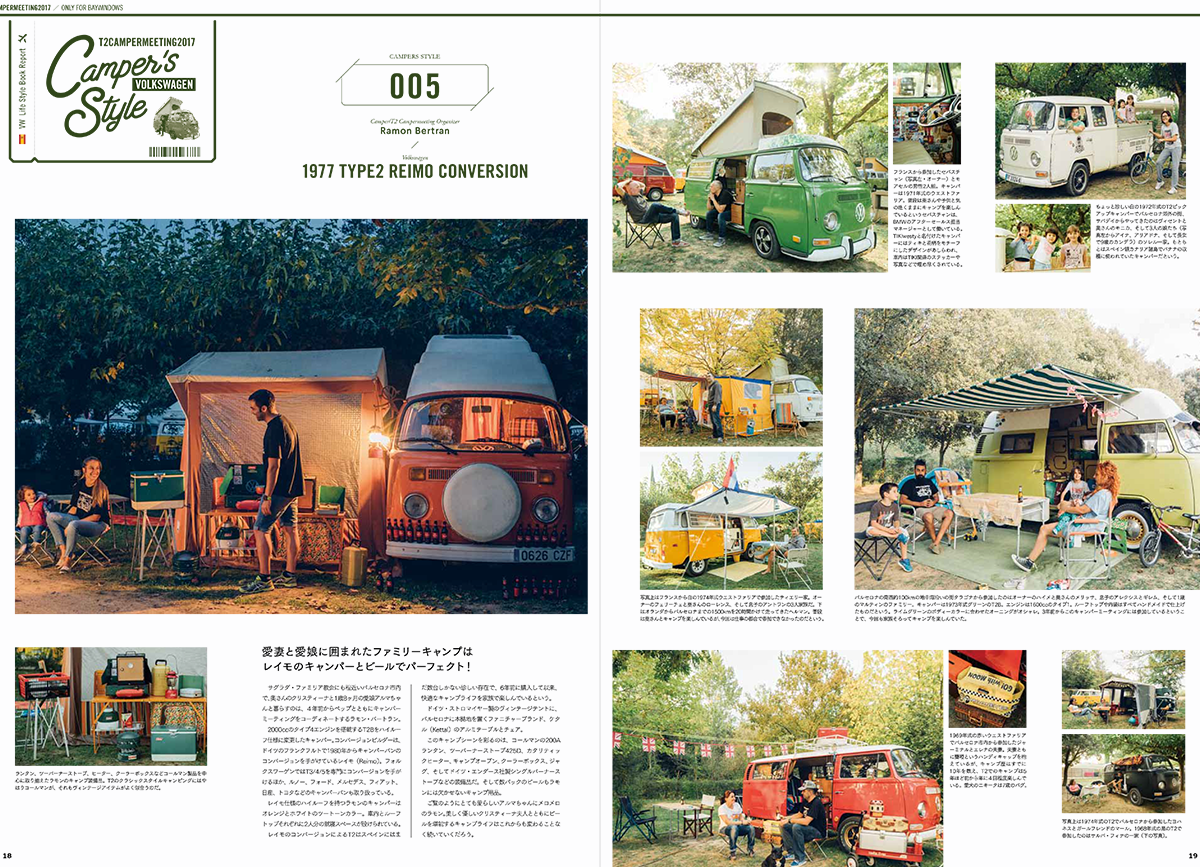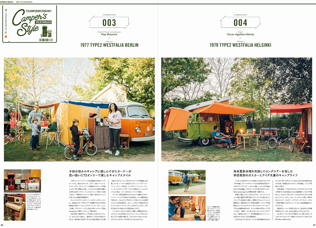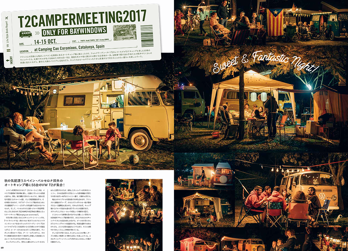 巻頭特集はスペイン・バルセロナ近郊で開催された『T2キャンパー・ミーティング2017』。レイトバスを中心に数十台のフォルクスワーゲン・タイプ2が森の中のキャンプ場で楽しんだ1泊2日のキャンプ・イベント。日本のおしゃれキャンプとはちょっと違った、美しいヨーロッパのキャンプ場での模様は日本国内で本誌だけの独占取材。ヨーロッパ各国から集まった、フォルスクワーゲン・キャンパーたちをたっぷりとご紹介します。